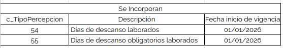 - c_TipoPercepcion* se agregan 2 claves: 054 y 055