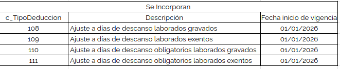 - c_TipoDeduccion* se agregan 4 claves: 108 , 109 , 110 y 111