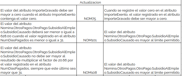 - Se actualiza la validación y código de error NOM75, NOM101 y NOM108.