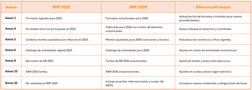 - La estructura general de la RMF se mantiene, con reglas por materia fiscal y anexos técnicos.